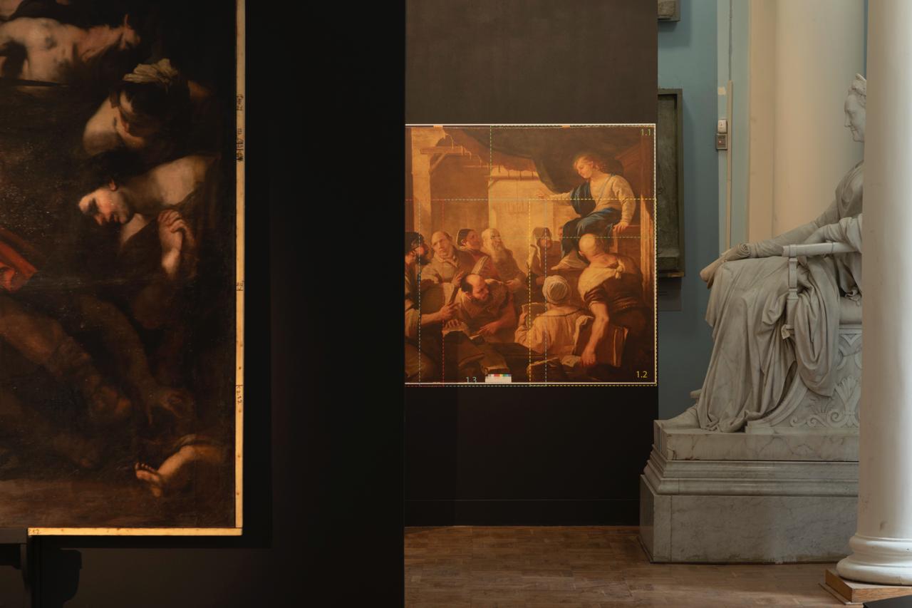 Также гости музея могут познакомиться с инструментами реставраторов масляной живописи и даже увидеть их работу. Для этого на выставке работает «открытая реставрационная мастерская», в которой специалисты занимаются восстановлением другой картины Луки Джордано – «Иисус среди книжников».